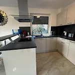 Die Gäste dieser Villa können ihre eigenen Mahlzeiten in einer kompletten Küche zubereiten. Von der Villa in Tornesch sind es 32 Minuten mit dem Auto zum Flughafen Hamburg.
